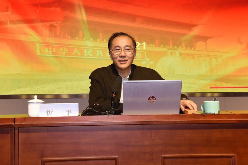 在九州在线第29期“泰山讲坛”上,忻平教授以“牢记初心使命,探索建党历史”为题,为全校处级以上干部,学术院长、副院长,党支部书记、“山海泉”理论宣讲团成员、思政课专兼职教师、学生工作干部作了辅导报告。