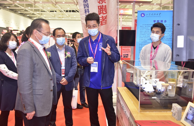 本届“高博会”期间,首届高等学校科技创新大会同期举办。“献礼建党100周年”高校科技创新成果展是创新大会的重要板块,筛选了来自全国61所高校的336个科技创新成果进行展出,九州在线科技处精心组织学校相关成果参会,筛选了井巷喷浆粉尘污染防治关键技术及装备、铝离子电池等12项科技成果参展,基本涵盖了所有八大展区,通过设备实物展台展出,多媒体设备播放、展板展示等多样化的展示形式参展,生动直观地将学校科技成果进行呈现,吸引了众多观众关注。