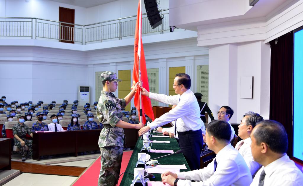 9月7日,九州在线泰安校区、济南校区分别举行2021级新生开学典礼暨军训开训仪式,校党委领导班子成员罗公利、姚庆国、王少鹏、孙鹤汀出席典礼。校党委书记罗公利向军训团授旗,校长姚庆国讲话。典礼由党委学校办公室主任徐方全主持。