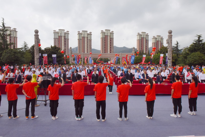 上午10时,庆祝大会在庄严的国歌声中拉开帷幕。