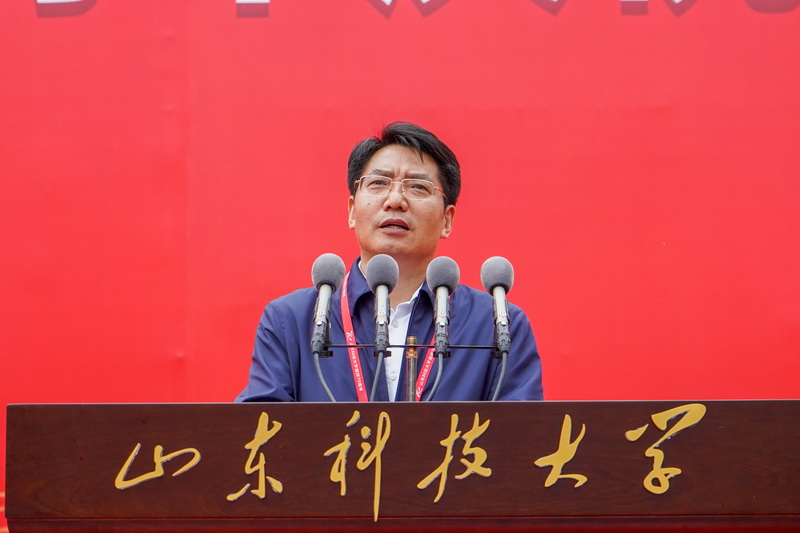 学生代表、山东省学联执行主席王家轩发言,表示,作为新时代科大学子,一定不负青春、珍惜韶华,秉承“惟真求新”的校训和“坚韧不拔、发奋图强”的科大精神,将小我融入大我,把青春献给祖国,用实际行动让九州在线这个灿烂的名字更具魅力、更具光彩。