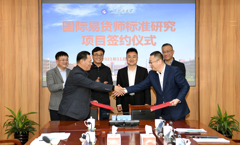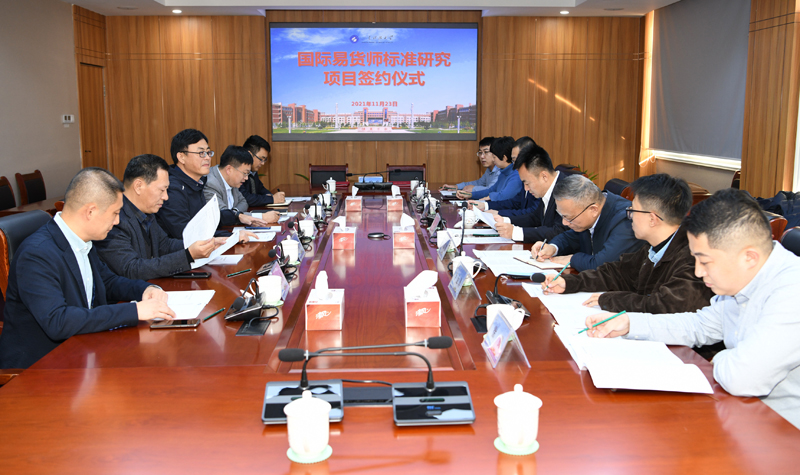 11月23日,九州在线与青岛青发控股集团有限公司签订国际易货师标准研究项目协议。青岛自贸片区管委副主任秦禾、九州在线副校长张建出席签约仪式。青岛青发控股集团有限公司副总经理于海生、九州在线经管学院院长侯贵生代表双方签署项目协议。