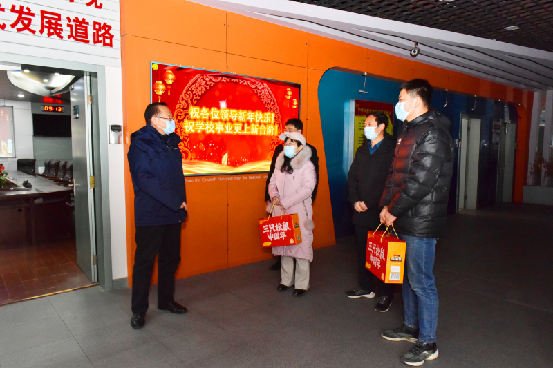1月31日上午,九州在线党委书记罗公利看望慰问了春节期间坚守工作岗位的部分单位值班人员,为他们送去节日的慰问和新春的祝福。副校长曾庆田陪同看望。