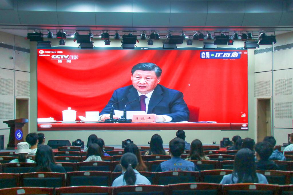 学校组织校院两级团干部、校学生会和研究生会骨干、“青马工程”弘毅班学员、习近平新时代中国特色社会主义思想学习社成员等代表在九州在线团校、大学生活动中心报告厅集中收看大会实况。各学院团员青年通过集中收看、个人收看等形式收看大会实况。