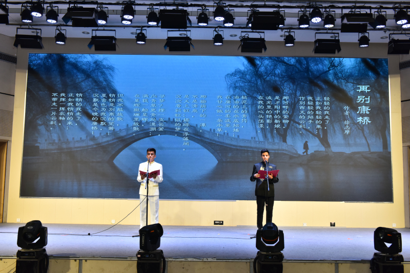 在比赛环节间隙,诗朗诵、歌曲等节目穿插上演。学校留学生的诗词朗诵《行路难》《再别康桥》字正腔圆,文法大艺团声乐队的歌曲《岳阳楼记》悠扬绵长,文法学子将《沁园春·雪》《小平,您好》《满江红·江上青百年诞辰祭》《科学发展观之歌》《念奴娇·追思焦裕禄》等诗作朗诵出爱国真情,让诗词大会成为学生品味党史、感悟传承、夯实文化底蕴的思想政治教育实践课新载体,以此献礼党的二十大。