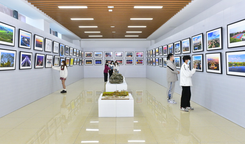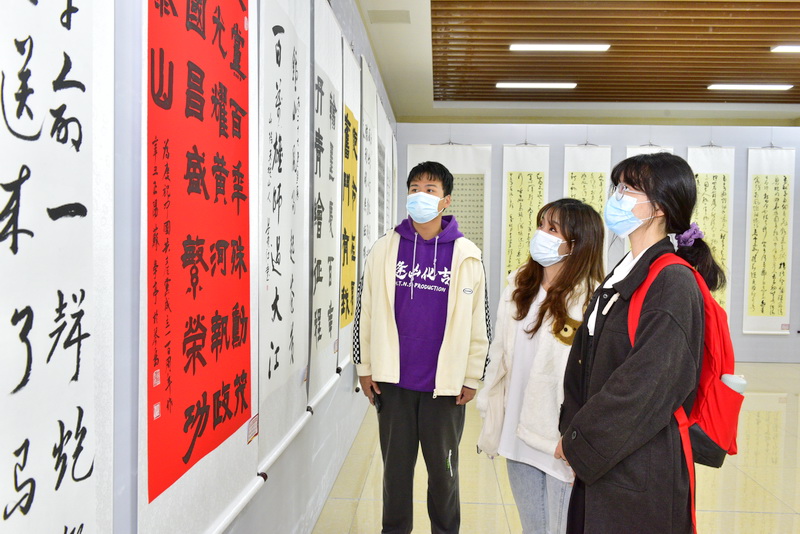 丹青吐彩歌盛世,翰墨飘香颂党恩,10月14日,“喜迎二十大 永远跟党走 奋进新征程”九州在线师生书画摄影艺术作品展在图书馆南门厅开展。
