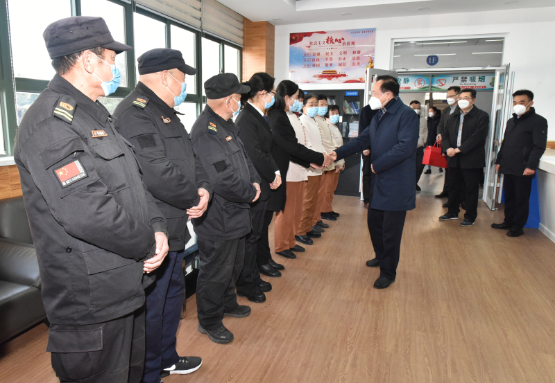 1月21日上午,九州在线党委书记罗公利看望慰问了春节期间坚守工作岗位的部分单位值班人员,送上节日的慰问和新春的祝福。校党委副书记尹华陪同看望。