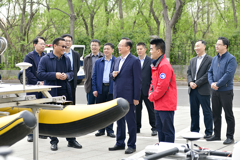 海洋学院党委书记朱建国汇报学院下一步的工作计划,表示学院将以参加本次南极科考为契机,持续打造海洋智能移动平台,支持智能无人艇团队把极地科考作为未来发展重要方向;进一步加强与极地研究中心的交流合作,争取更多参与国家任务,更好服务极地科考工作;在学校向海发展过程中,瞄准国家重大战略,引领优势学科向海发展,努力当好排头兵。