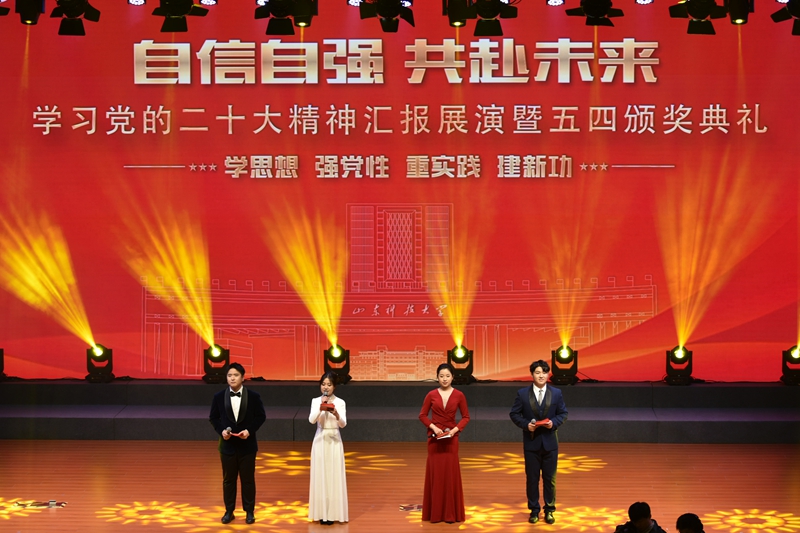 据介绍,此次汇报展演和颁奖典礼目的是为深入学习宣传贯彻党的二十大精神,教育引导广大团员青年切实把思想和行动统一到党的二十大精神上来,在新征程展现科大青年新作为。2022年,学校团委以习近平新时代中国特色社会主义思想为指导,以迎接和学习宣传贯彻党的二十大精神为主线,在强化思想引领、深化创新实践、丰富校园文化、夯实组织基础等方面开展了一系列卓有成效的工作,涌现出“全国优秀共青团干部”“全国煤炭青年五四奖章”“全国煤炭行业五四红旗团委”等一批先进集体、先进个人。