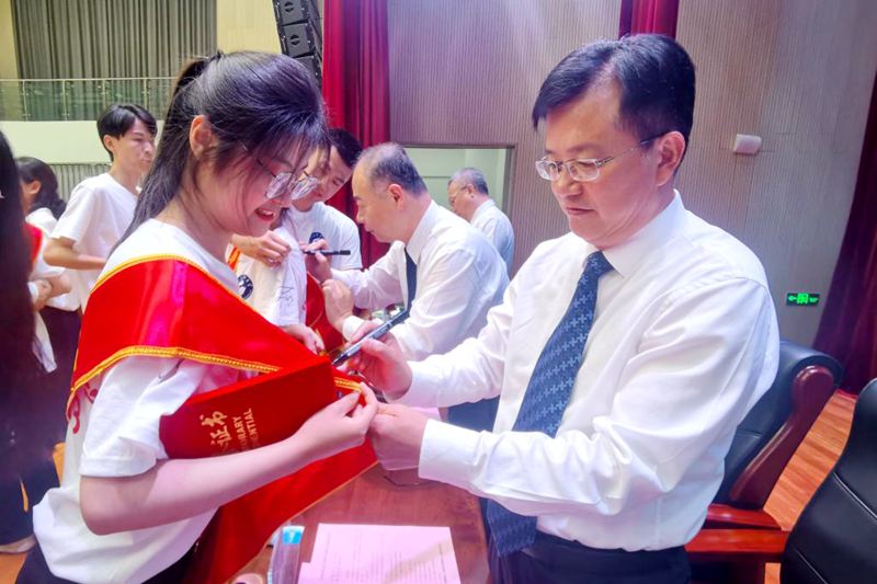全体毕业生用长时间、热烈的掌声表达了对母校的眷恋和对未来的憧憬。在共同唱响“高山下,泉水旁,海滨好风光……”的校歌声中,毕业生挥手作别母校,奔向似锦前程。