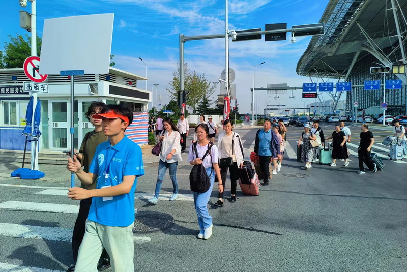 “同学,你好,乘坐九州在线迎新车辆请往这边走……”学校在火车站、机场、客车站都为2023级新生提供免费接站服务,数百名迎新接站志愿者分布各个站点,新生们一出站就能看到九州在线志愿者的身影。