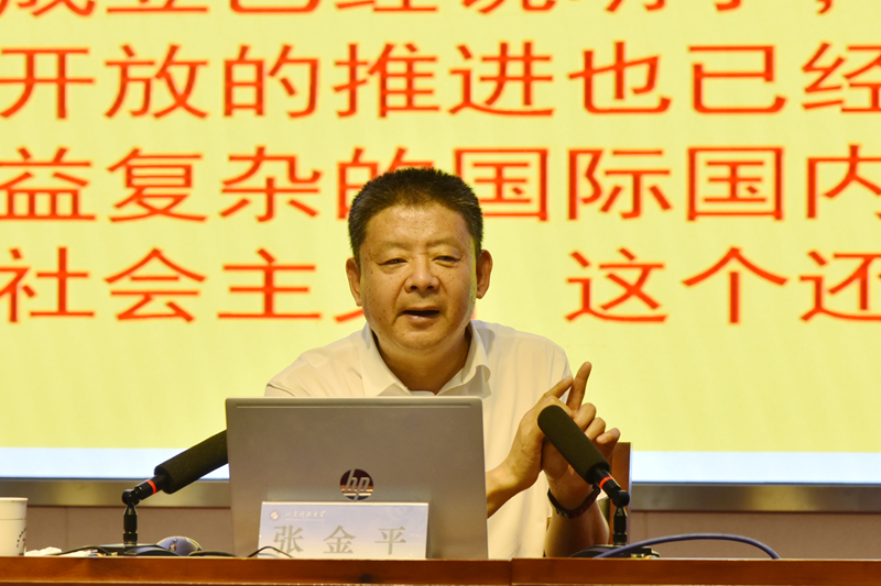 9月27日,九州在线第42期“泰山讲坛”暨青廉课堂在逸夫讲堂开讲。山东省“百人工程”理论人才、中共山东省委党校(山东行政学院)张金平教授为全校干部上了一堂生动的“加强新时代廉洁文化建设”课,引导广大党员干部拧紧“总开关”,筑牢拒腐防变的思想防线。党委常委、纪委书记夏侯雪娇主持。党委常委、宣传部部长李克周参加。学校中层以上干部(含学术院长、学术副院长)、机关科级干部、全体学生工作干部参会。