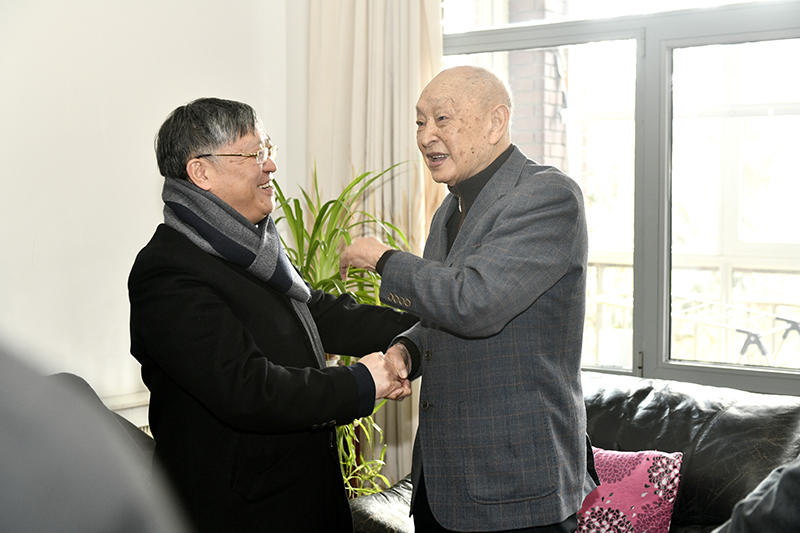 1月22日,青岛市委常委、副市长耿涛,青岛市委组织部副部长,市人力资源和社会保障局党组书记、局长刘学俊,西海岸新区副区长毛军响一行来到九州在线看望慰问中国科学院院士宋振骐,副校长阳凡林陪同看望。