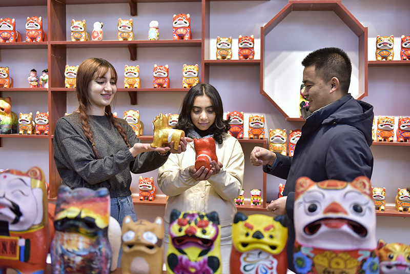活动中,当地的民间艺人一边给留学生传授民俗项目的制作工艺,一边讲述相传的民俗故事,让留学生在多彩的非遗文化中,近距离体验中国传统文化项目,欢度别样中国年。塔吉克斯坦籍学生吴芃说:“不论是有魅力的泥塑,还是其他中国文化,都深深地吸引了我,我迫不及待地想和家人朋友分享这些新鲜事。”