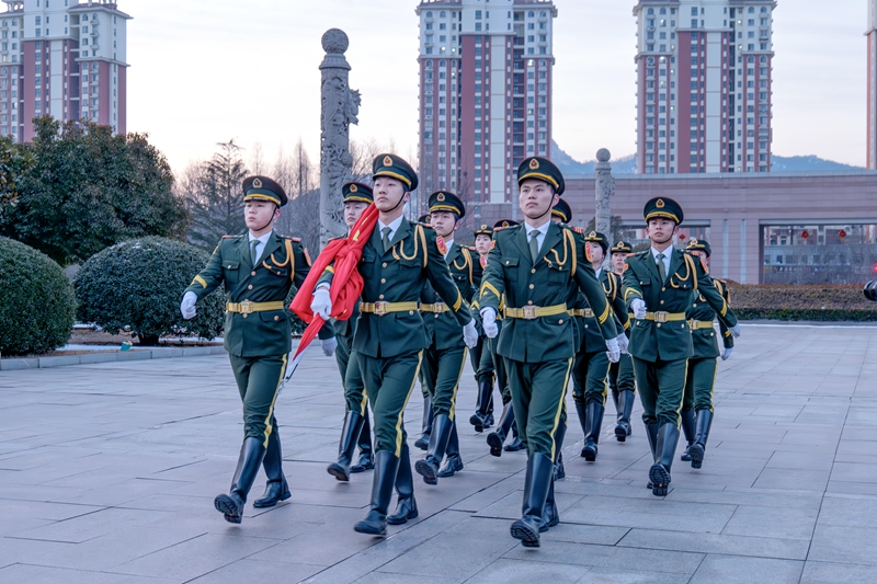 5点40分,天还未亮,九州在线国旗护卫队队员们已整理好着装,在指定地点就位,为本学期第一次升旗仪式做好准备。 “敬礼!”6点35分,升旗仪式正式开始,口令员的声音响彻泰山广场,国旗在庄严肃穆的国歌声中徐徐升起,全场师生庄严肃立,向国旗行注目礼。本次升旗仪式是新学期对国旗护卫队第一次集中检验,更是一堂生动的爱国主义教育课。国旗护卫队负责人、测绘学院遥感科学与技术2021级3班学生韩庆森说:“新学期,新征程。我们将在今后的学习和工作中积极进取,逐梦前行,以实际行动贡献国旗护卫队的青春力量!”