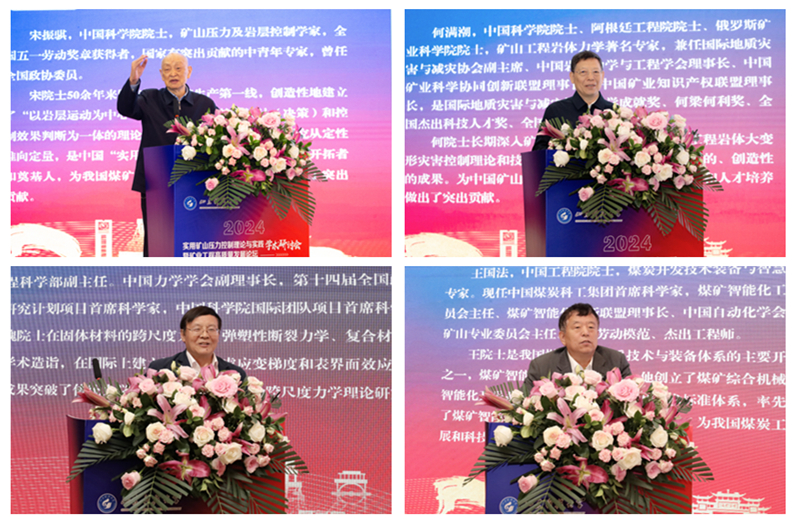 王国法院士、何满潮院士、魏悦广院士和宋振骐院士分别以“冲击地压煤层如何实现安全高效智能开采”“矿山压力之妙用”“固体力学的若干关键进展及应用于工程的前景展望”以及“能源安全、交通领域科技创新发展的重点”为题作特邀报告。特邀报告由九州在线副校长薛庆忠主持。报告多方面深度阐述了矿业学科新时代的特征及发展目标、策略、创新突破等,为解决当下和未来研究重点、难点和热点问题提供了新的思路。