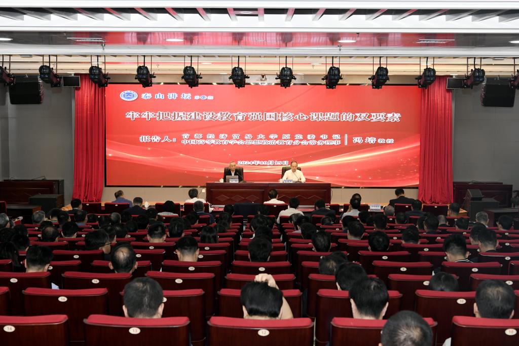10月15日,学校举办“泰山讲坛”第47期报告会,首都经济贸易大学原党委书记、中国高等教育学会思想政治教育分会常务理事冯培教授应邀作题为“牢牢把握建设教育强国核心课题的双要素”专题报告。校党委班子成员罗公利、刘明永、阳凡林、薛庆忠、诸葛福民、李克周参加报告会。