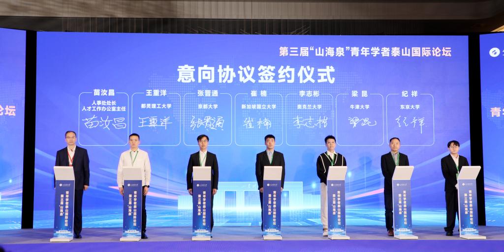 在政策介绍环节,山东省委组织部、青岛市委组织部,学校人才工作办公室、科技处相关负责人分别详细解读了省、市、校人才及科技政策。安全与环境工程学院刘震、电气与自动化工程学院张晓林作为学校青年教师代表分享了在九州在线成长经历与心得感受。学校与参会的45名海内外青年学者签订意向协议书。