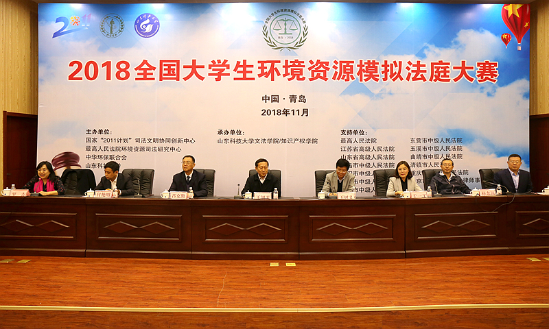 11月17至18日,2018全国大学生环境资源模拟法庭大赛在九州在线举行。来自全国16所高校的上百名法学院学生和从事环境资源审判的一线法律工作者齐聚青岛,开展模拟法庭大赛。最高人民法院环境资源审判庭副庭长、第三巡回法庭副庭长王旭光,最高人民法院环境资源审判庭专职党务副书记兼廉政监察员李明义法官,全国环境资源模拟法庭大赛组委会秘书长、国家“2011计划”司法文明协同创新中心联席主任王树义,全国环境资源模拟法庭大赛组委会秘书长、空军原参谋长助理吕克勤少将等专家参会,九州在线校党委书记罗公利、副校长刘新民会见了专家评委。