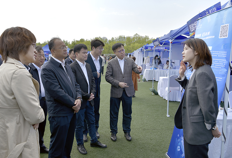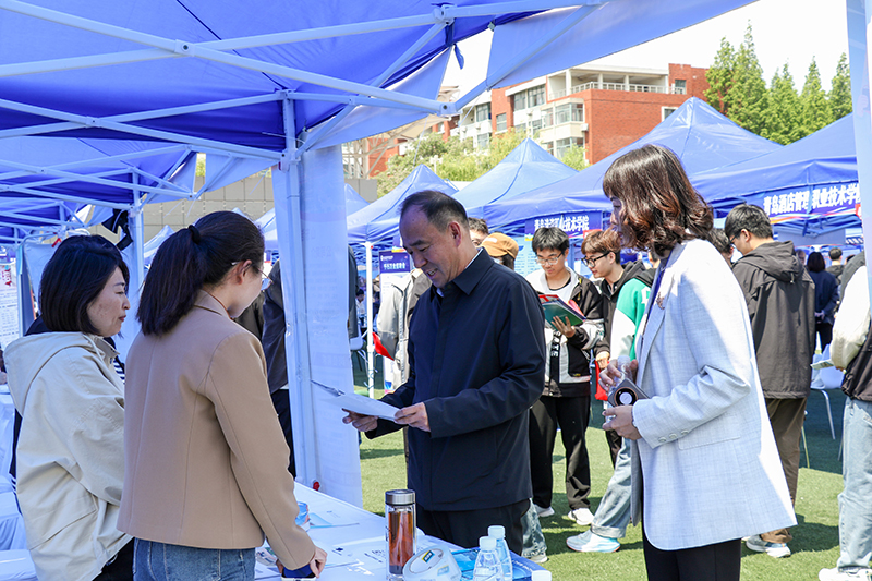 启动仪式后,与会嘉宾来到招聘会现场查看供需对接情况,了解企业用人需求及毕业生求职进展。王君松、曾庆田与用人单位和在场毕业生交流,详细了解求职意向和进展,鼓励毕业生脚踏实地、积极就业、务实择业。