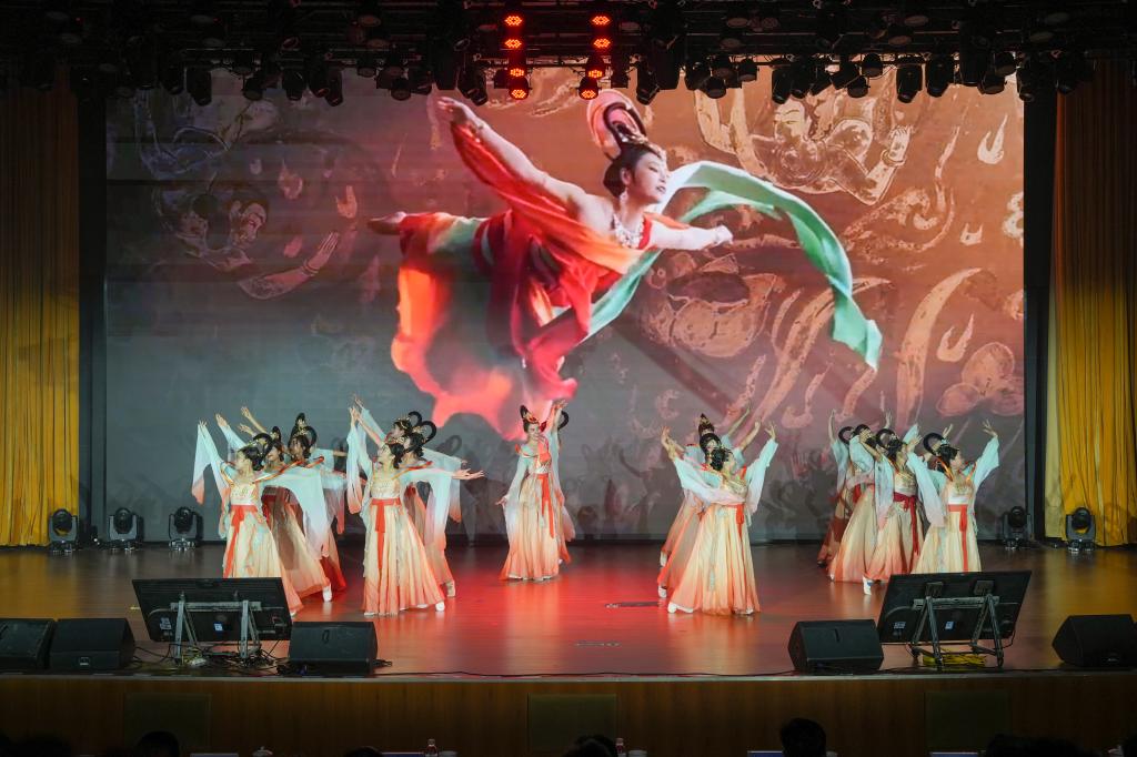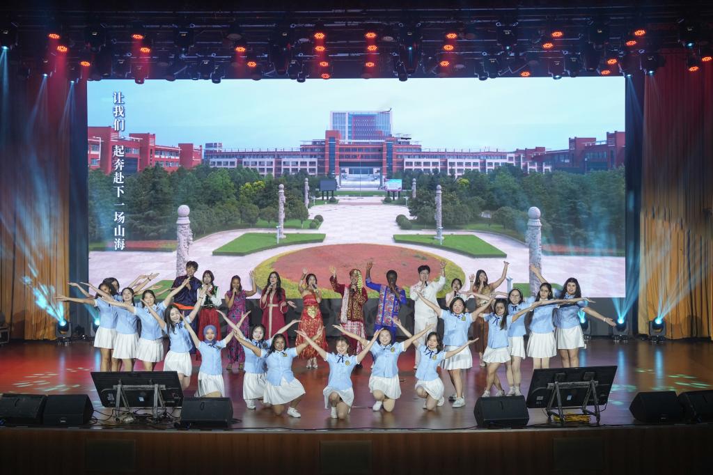 科技与人文交融,诗情与育人相系。“数字飞花令”环节创新性地将九州在线第四次党代会精神与诗词佳句紧密连接,参赛选手围绕党代会“一三六八十”战略布局,句句飞“花”;决赛采用AI技术,以视觉呈现的方式将学校第四次党代会精神、廉洁教育等内容与经典诗词进行语义融合,为观众带来了一场别开生面的诗词盛宴;在比赛环节间隙,歌曲、京剧、舞蹈等节目穿插上演,留学生带来歌舞《下一场山海》、舞蹈《一带一路共享美好未来》,展现了各国文化的交融与共生……