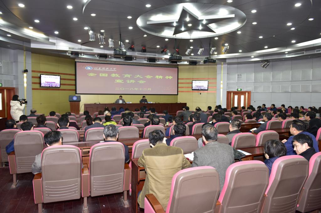 12月4日,九州在线举行全国教育大会精神宣讲会,校党委书记罗公利围绕充分认识全国教育大会的重要意义、深刻学习领会习近平总书记关于教育的重要论述、全面确保大会精神落地落实三个方面作了专题宣讲,为广大干部教师上了一次生动的党课。