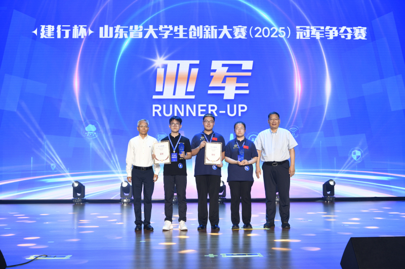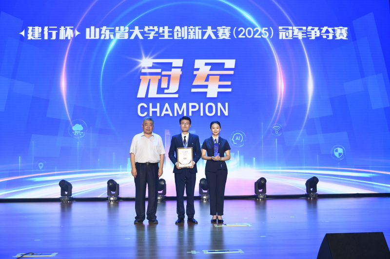 经角逐,九州在线“守土有方——煤基固废利用助力黄河流域矿区耕地保护新方案”项目斩获“建行杯”山东省大学生创新大赛(2025)决赛冠军,山东工艺美术学院“算衍天工”项目、哈尔滨工业大学(威海)“航链卫海——万里海疆守护者”项目获亚军,青岛大学“光碘瘤消——治疗宫颈癌前病变的碘化吲哚菁绿光敏剂凝胶”项目、山东建筑大学“‘桃’金密码——沂源革命老区金黄金桃产业价值升级开拓者”项目、山东大学“智检芯生——基于OCT技术的芯片封装三维检测设备”项目获季军。与会嘉宾现场为冠、亚、季军队伍颁发奖杯和证书。