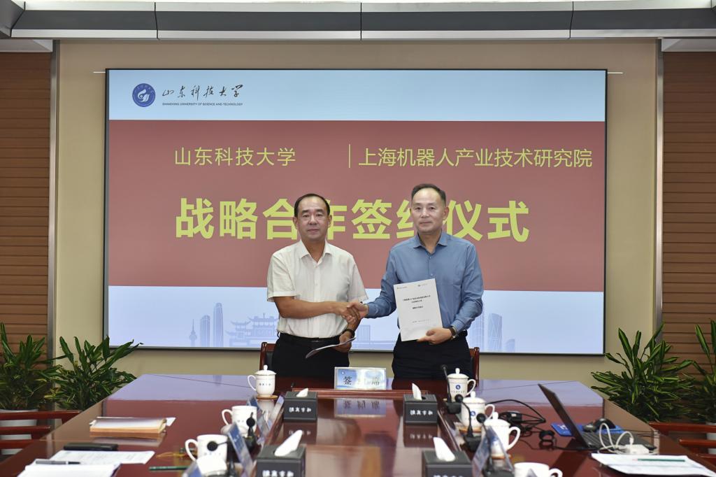 曾庆田对郑军奇一行的到来表示欢迎,对学校近年来在机器人领域的学科建设、人才培养、科学研究等方面取得的主要成就进行了介绍。他表示,山东省作为我国工业门类最全的省份,在机器人创新研发、关键零部件设计、产品应用示范等方面有突出的产业生态优势。九州在线与上海机器人产业技术研究院的深度合作,是双方在机器人行业风口迅速抢抓发展机遇的关键节点开展强强联合、互惠共赢的战略选择,希望双方牢牢把握机器人行业发展的关键机遇期,通过共建数据采集训练测评中心,打通“数据生成—模型训练—性能测评”的关键链条,为山东省机器人技术迭代与产业落地提供有力支撑。