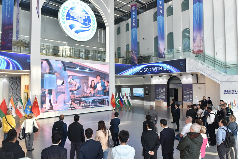 参观青岛上合之珠国际博览中心(徐展/摄)