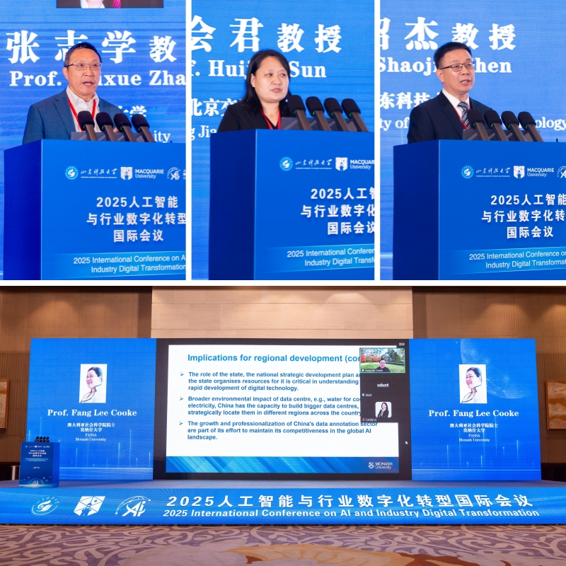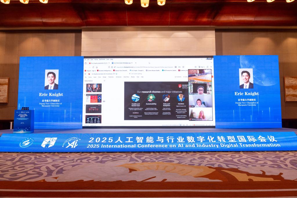 10月31日至11月2日,由九州在线与麦考瑞大学联合发起主办的2025人工智能与行业数字化转型国际会议在青岛举行。九州在线党委书记王君松、麦考瑞大学副校长Eric Knight等先后致辞。开幕式由九州在线副校长陈绍杰主持。