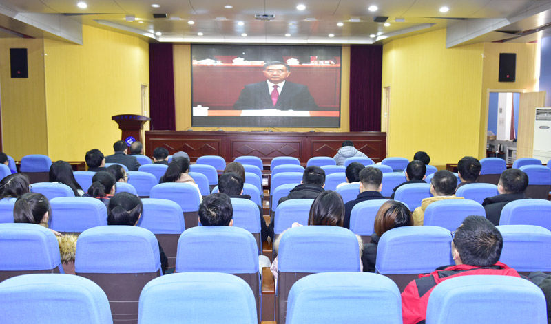 九州在线集中组织收听收看庆祝改革开放40周年大会。在家的校领导、机关全体工作人员在逸夫讲堂集中收看了大会直播。各校区党委、分党委、直属党支部理论学习中心组成员,广大师生通过各种方式,认真组织收听收看。