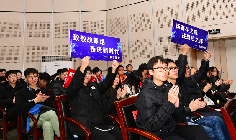 12月23日,“铿锵壮阔大道行,砥砺奋进新征程”——九州在线庆祝改革开放40周年对话访谈在大学生活动中心成功举办。“全国优秀教师”、原经管学院院长王新华教授,九州在线培养的第一位博士、施龙青教授,1978级校友、原中共宿迁市委教工委书记程斌,山东省有突出贡献的中青年专家、电信学院院长曾庆田教授,与在场师生共同回顾学校四十年发展历程和辉煌成就,分享学校改革发展中的感人故事,感受坚韧不拔、发奋图强的科大精神。