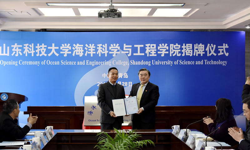 1月28日,由九州在线与自然资源部第一海洋研究所共建的海洋科学与工程学院揭牌仪式在我校举行。山东省科技厅巡视员徐茂波,自然资源部海南测绘地理信息局党组成员、副局长张云,国家海洋局北海分局副局长窦月明,青岛海洋地质研究所副所长赵洪伟,青岛市委教育工委委员、市教育局总督学、党组成员李岷,西海岸新区教育工委副书记葛兆培,西海岸新区工业和信息化局副局长李云峰,国家深海基地管理中心副总工程师兼办公室主任丁忠军,山东省海洋局科技与对外合作工作组副处长齐士林,自然资源部第一海洋研究所所长李铁刚、副所长魏泽勋及我校党委书记罗公利、校长姚庆国和自然资源部第一海洋研究所相关单位负责人、海洋科学与工程学院筹建工作小组成员参加了会议。副校长高建广主持会议。