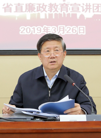 3月26日,山东省直廉政教育宣讲团成员、省纪委省监委原一级巡视员宋晋做客九州在线第19期“泰山讲坛”,作题为“以习近平新时代中国特色社会主义思想为指导 不断推动全面从严治党向纵深发展”专题报告。