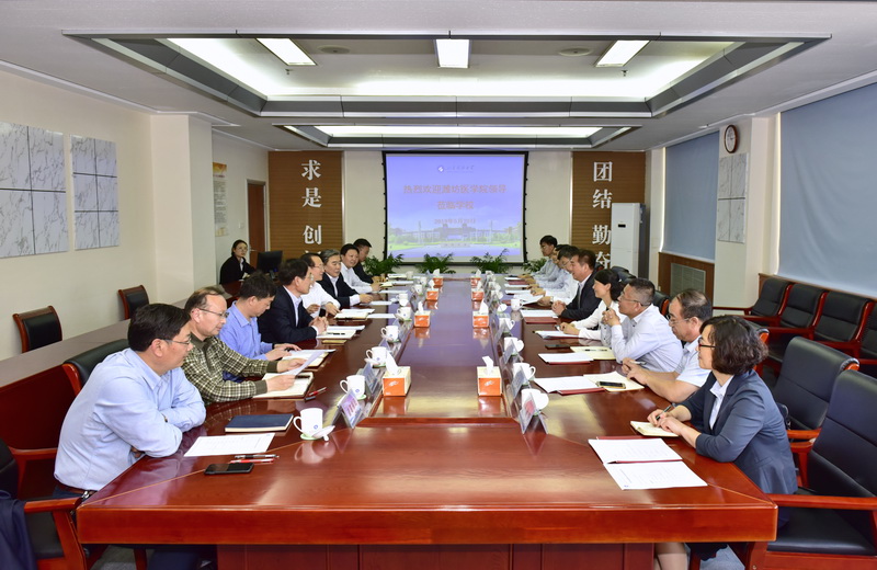 5月20日,潍坊医学院党委书记李欣章、校长管英俊、副校长刘军带队来我校进行工作交流。校党委书记罗公利、校长姚庆国、副校长孙鹤汀会见客人,并进行了座谈交流。