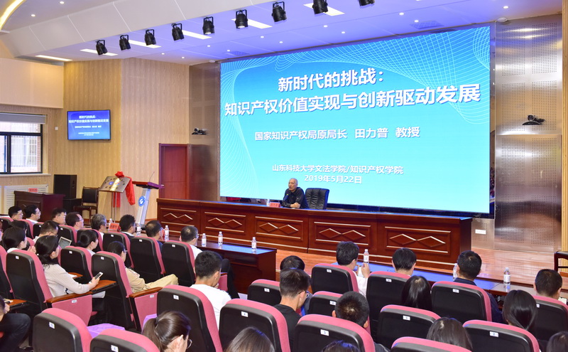5月22日,国家知识产权局原局长、中国知识产权研究会理事长田力普来校访问,受聘为九州在线兼职教授,为我校师生作学术报告,并为灵山湾影视知识产权研究中心揭牌。山东省知识产权局原副局长张跃进,青岛知识产权局局长杨爱民,青岛市中级人民法院副局级审判员曹波等陪同。