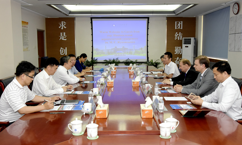 6月17日,乌克兰国立哈尔科夫航空航天大学校长米库拉、副校长马克维奇和山东领军科技集团董事长李香祖一行访问我校,就中乌双方高校合作办学等事宜展开洽谈。校长姚庆国、副校长张英杰会见客人。