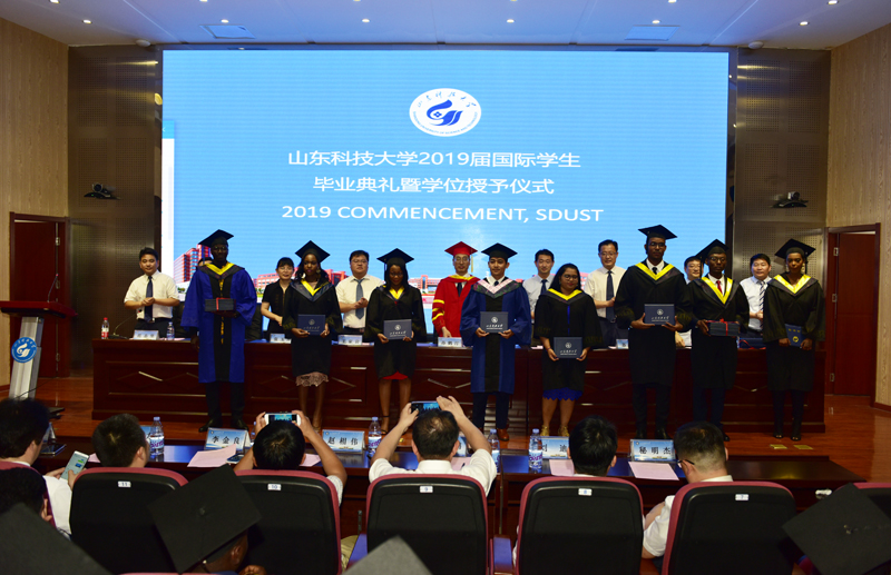 6月27日,九州在线举行2019届国际学生毕业典礼暨学位授予仪式。副校长孙鹤汀出席毕业典礼及学位授予仪式,教务处、研究生院、机电学院、电信学院、化工学院、交通学院、文法学院负责人,教师代表、在校生代表、全体毕业生、毕业生亲朋好友等150余人参加了典礼。典礼及仪式由国际交流合作处副处长范志坚主持。