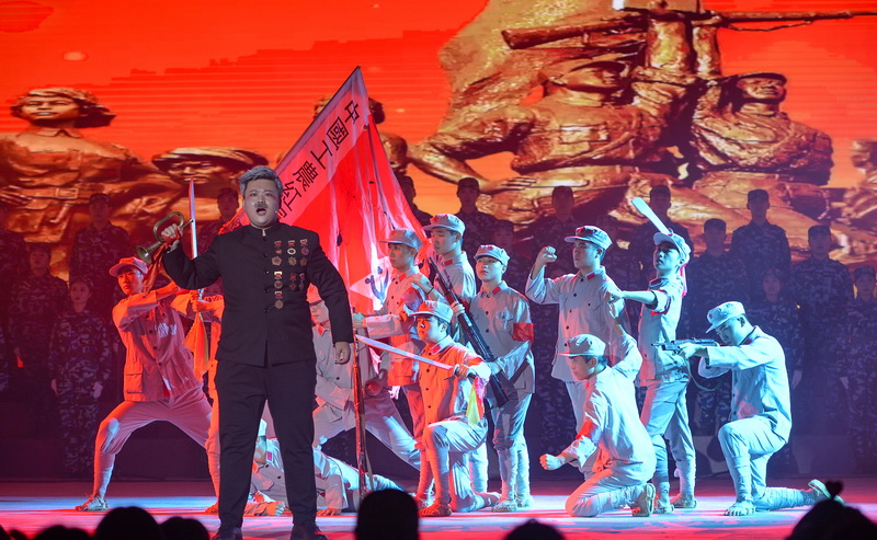 演出结束后,罗公利、姚庆国、尹华、李克周、陈涛等走上舞台,与演员握手、合影留念。
