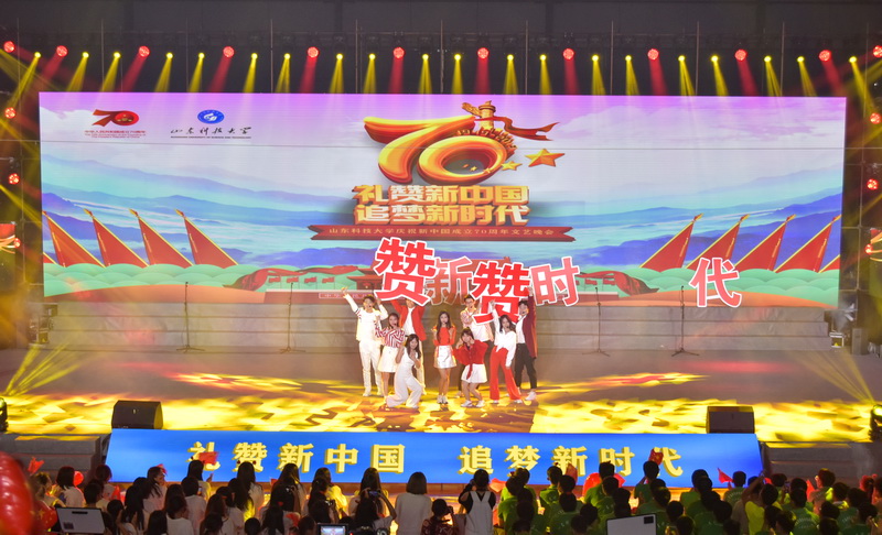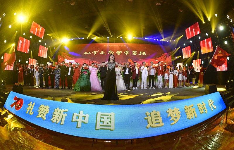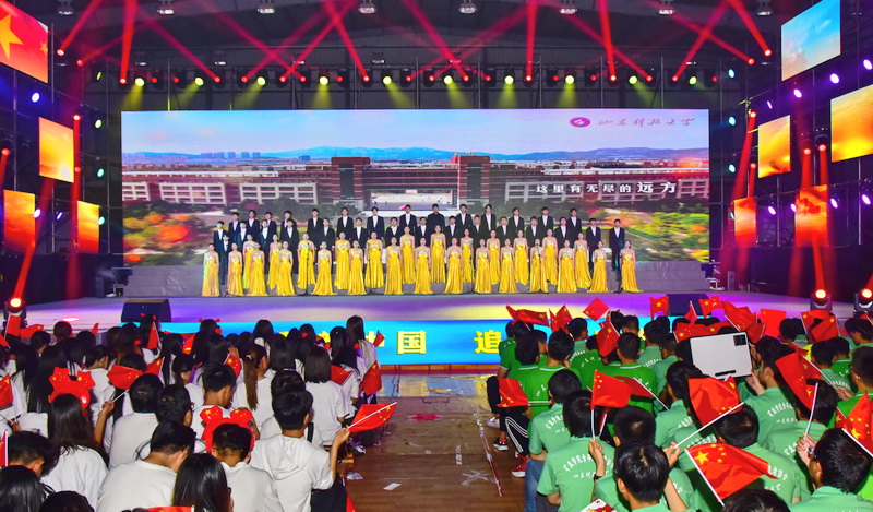 9月29日,学校举行“礼赞新中国 追梦新时代”庆祝新中国成立70周年文艺晚会。校党委领导班子成员罗公利、姚庆国、尹华、李克周、陈涛与近2000名师生共聚一堂,向祖国深情“表白”,共同祝福伟大的祖国繁荣昌盛。