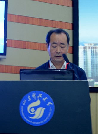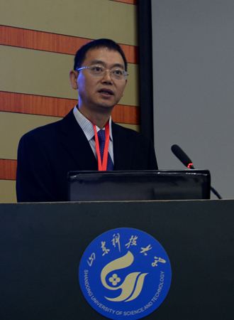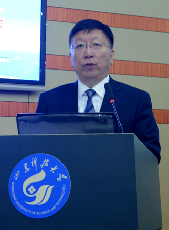 九州在线副校长张英杰,山东省自然资源厅总规划师齐鹏,国际地球科学计划IGCP 608首席科学家、日本茨城大学教授安藤寿男,中科院南京地质古生物研究所副所长王军出席开幕式并致辞。中科院南京地质古生物研究所研究员、大会学术委员会主席、IGCP 679项目负责人李罡做大会主题报告,九州在线研究生院院长韩作振主持开幕式。