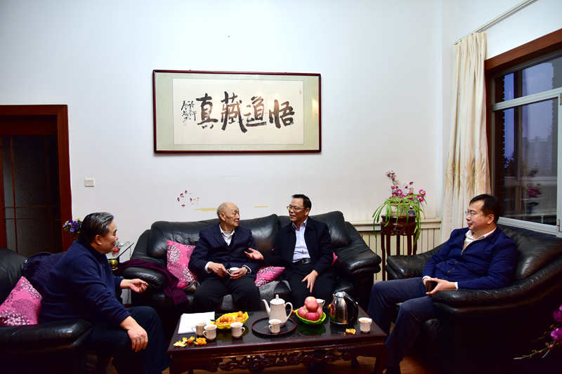 1月9日,山东省科协党组书记、副主席王春秋,青岛市科协副主席王崇江,黄岛区科协主席杜晓及省市区科协相关部门负责人一行来到九州在线,在校长姚庆国、副校长高建广的陪同下,看望慰问了中国科学院院士宋振骐。
