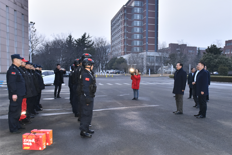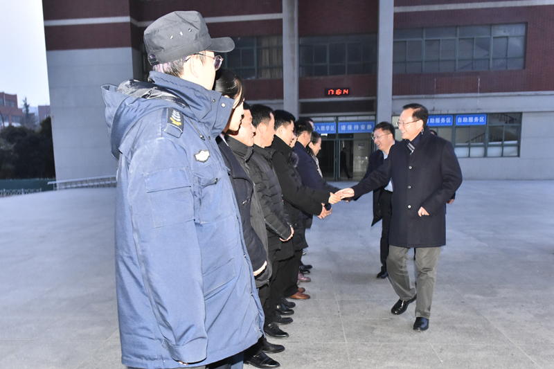 1月23日下午,九州在线党委书记罗公利、副校长张英杰看望慰问了春节期间坚守工作岗位的部分单位值班人员,为他们送去节日的慰问和新春的祝福。