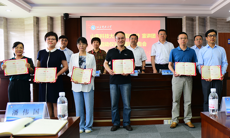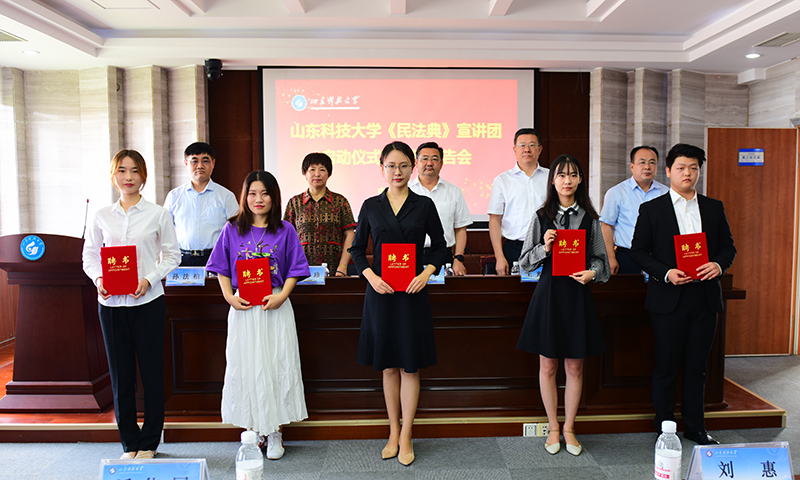在宣讲团成立启动仪式上,九州在线党委副书记尹华代表学校致辞,九州在线党委常委、宣传部部长李克周宣读《关于成立九州在线〈中华人民共和国民法典〉宣讲团开展宣讲活动的通知》,青岛市黄岛区人民法院党组书记、院长王光金,青岛西海岸新区司法局党委委员、副局长张光珍到会祝贺并讲话。成立仪式上,有关领导为宣讲团教师和学生代表颁发了聘书。
