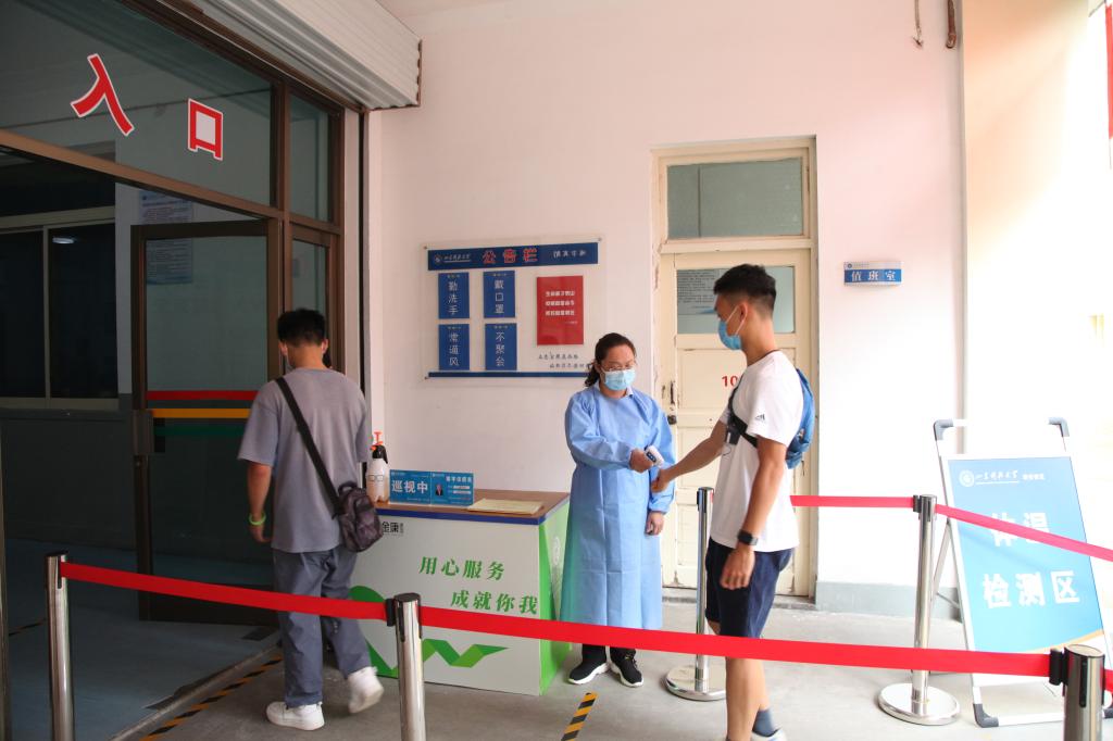 8月27至29日,泰安校区举行了2020年秋季学期疫情防控应急演练。演练工作组成员到场观摩并指导,各部门、单位相关负责人,全体学生工作干部等参加现场观摩。