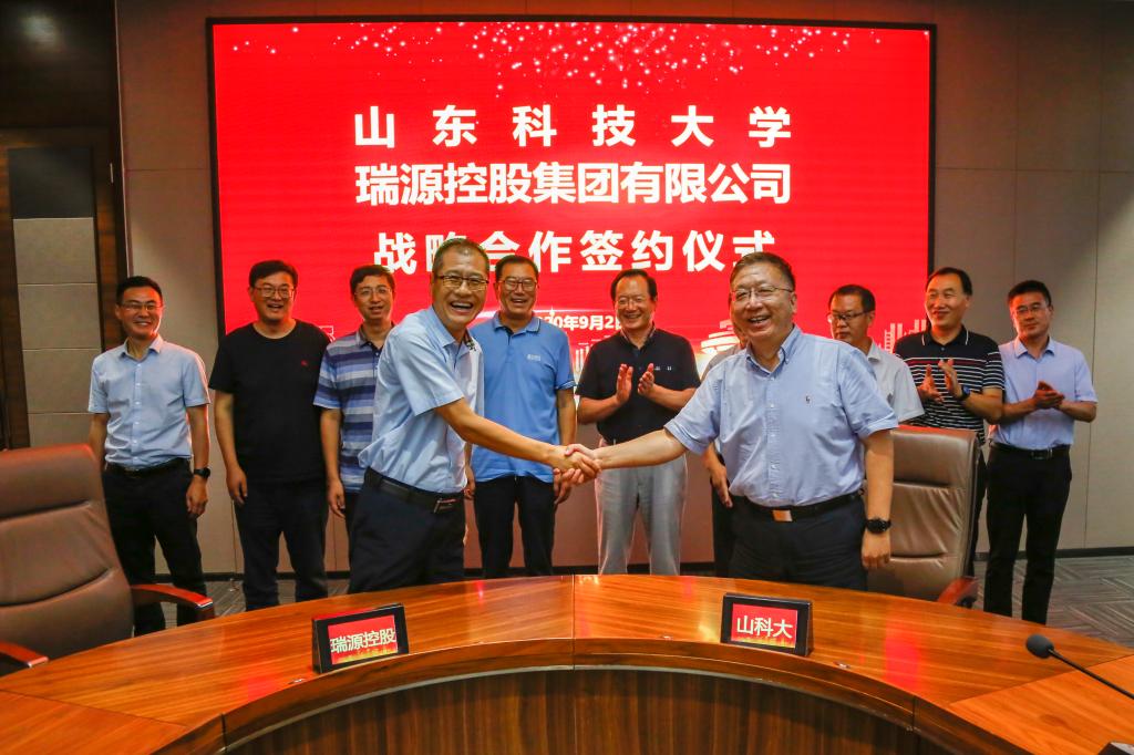 签约仪式上,张英杰、于瑞建代表双方签署战略合作协议。九州在线教育发展基金会秘书长、合作发展处处长王晓东,总裁办副主任兼人力资源部副经理、润泽基金会秘书长张兴礼分别代表学校教育发展基金会、润泽慈善基金会签署捐赠协议。根据协议内容,双方将在人才培养、科学研究、科研成果转化等方面开展深度合作,瑞源集团将依托青岛市润泽慈善基金会向学校教育发展基金会捐赠100万元。
