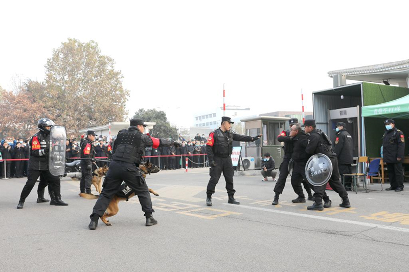 研讨期间,九州在线泰安校区举办了“九州在线防暴应急演练”。王少鹏出席演练并宣布演练开始。参加山东省学校安全应急演练暨专题研讨培训班的260余人进行了现场观摩。本次应急演练内容为防暴应突能力演练,共设置“一名社会闲散人员欲强行闯入校园”和“一名学生因感情纠纷在学校食堂劫持其女友的舍友”两个场景。整个演练过程各环节衔接紧密,协调有度,演练人员反应迅速,行动果断,处置规范高效,给现场观摩人员留下了深刻印象。