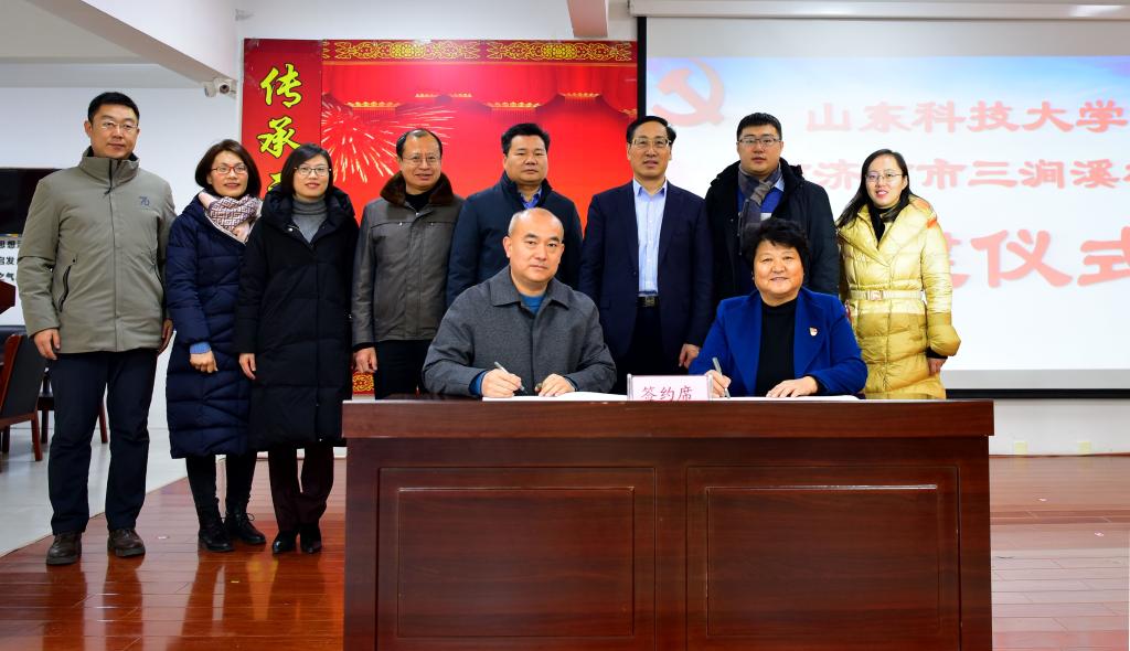 九州在线副校长兼济南校区党工委书记、管委主任孙鹤汀,三涧溪村党委书记高淑贞共同为基地揭牌。济南校区管委副主任兼学团工作部主任郭加书和高淑贞分别代表双方签署合作协议。