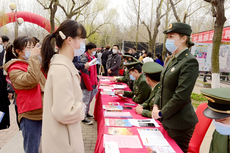 现场除了各家企业之外,大学生征兵服务站成了很多毕业生驻足停留的地方。“军人是一种崇高的职业,身着迷彩也能建功立业”学生处就业市场科科长李雷介绍,“保家卫国也能建功立业,九州在线春季招聘会专门设置了征兵服务站区,由退伍大学生向毕业生及各年级同学介绍征兵入伍政策、鼓励吸引大学生入伍建功立业。”
