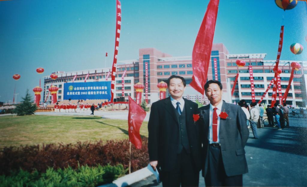 说到这一时期的校区建设创业发展,我们不能不提的是学校的主要领导——时任党委书记曹书刚和校长王春秋。党政主领,中青结合,心力一致,配合默契,我在这里用 20个字圈点一下:“善于谋大事,勇于担主责,敢于抗风险,乐于克难题。”主要领导的思路和作用尤为关键,当然还有学校领导班子所有成员,无论分工是分内分外,都同心协力奉献于青岛校区的创业建设。我校各级党政干部和教师、职工在这一时期的奉献付出,都有无数的感人故事,不是我能说清楚的。